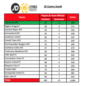 FAW Fair Play Table End of Season 2022/23